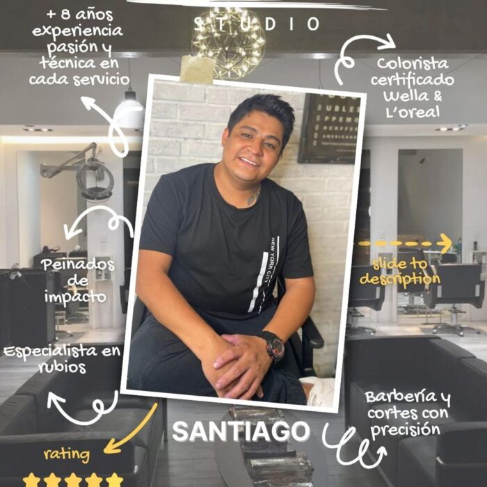 En cada servicio, Santi no solo ofrece técnica, sino una experiencia. Su enfoque personalizado garantiza que sus clientes se sientan valorados, entendidos y, sobre todo, increíbles. ¿Listo para tu próxima transformación? En las manos de Santi, seguro será inolvidable.
